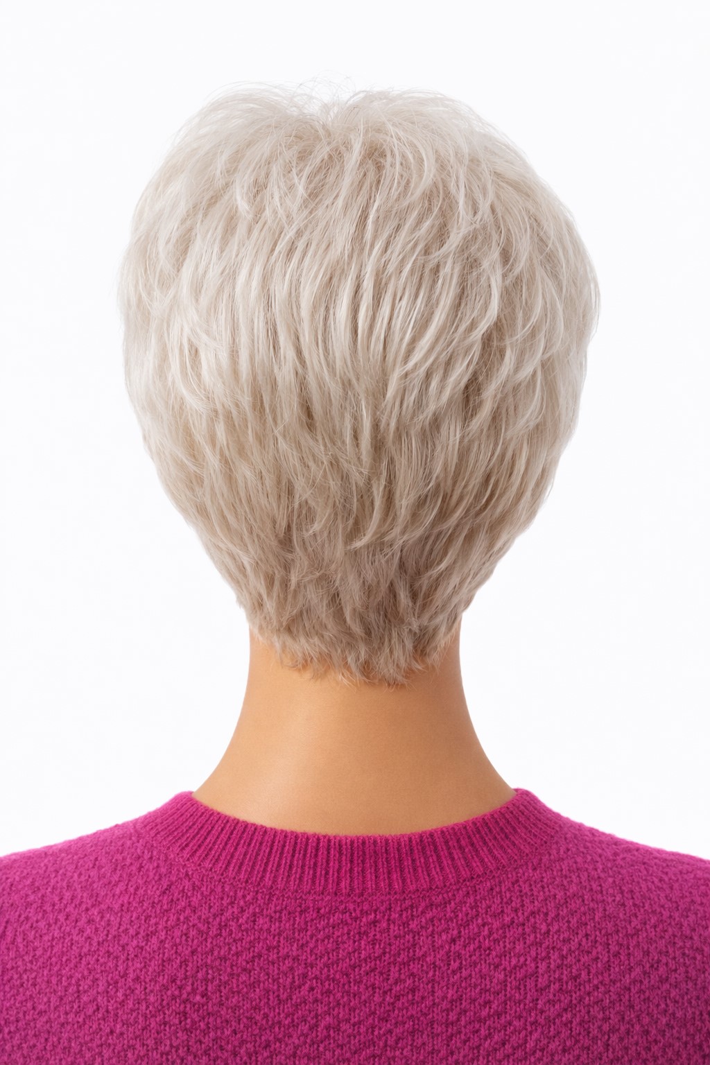 Peruka Molly z włosów syntetycznych naśladujących włosy prawdziwe. Wykonana w całości na oddychających tresach.Włos termiczny do 160 stopni.Rozmiar regulowany 53,5-55,9cm.Fryzura lekko uniesiona do góry,po zaczesaniu ” na płasko” można uzyskać fryzurkę bez efektu uniesienia.Struktura włosa prosta i gładka, jedwabista w dotyku.Włosy można układać w różnych kierunkach.Ultralekka.