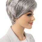Stylowa, krótka peruka damska z wysokiej jakości włókien syntetycznych w naturalnym odcieniu siwym to idealne rozwiązanie dla kobiet ceniących klasyczny, elegancki wygląd. Fryzura o delikatnie cieniowanych pasmach i miękkiej grzywce zapewnia naturalny efekt i wygodę noszenia na co dzień oraz na specjalne okazje.