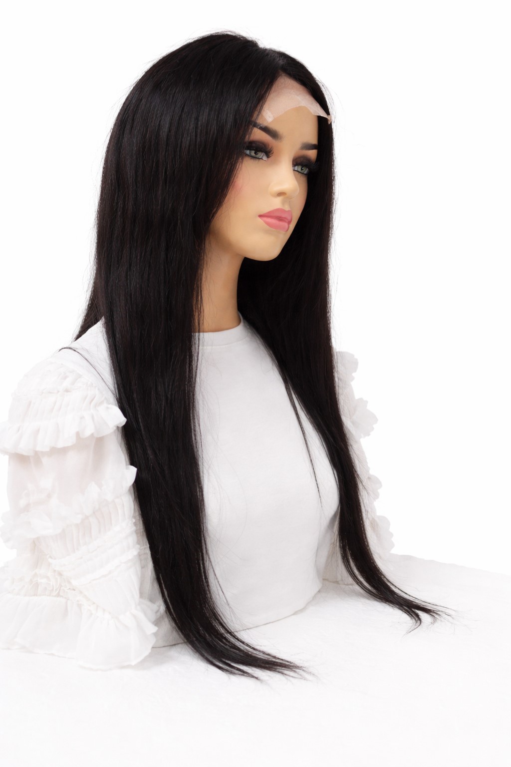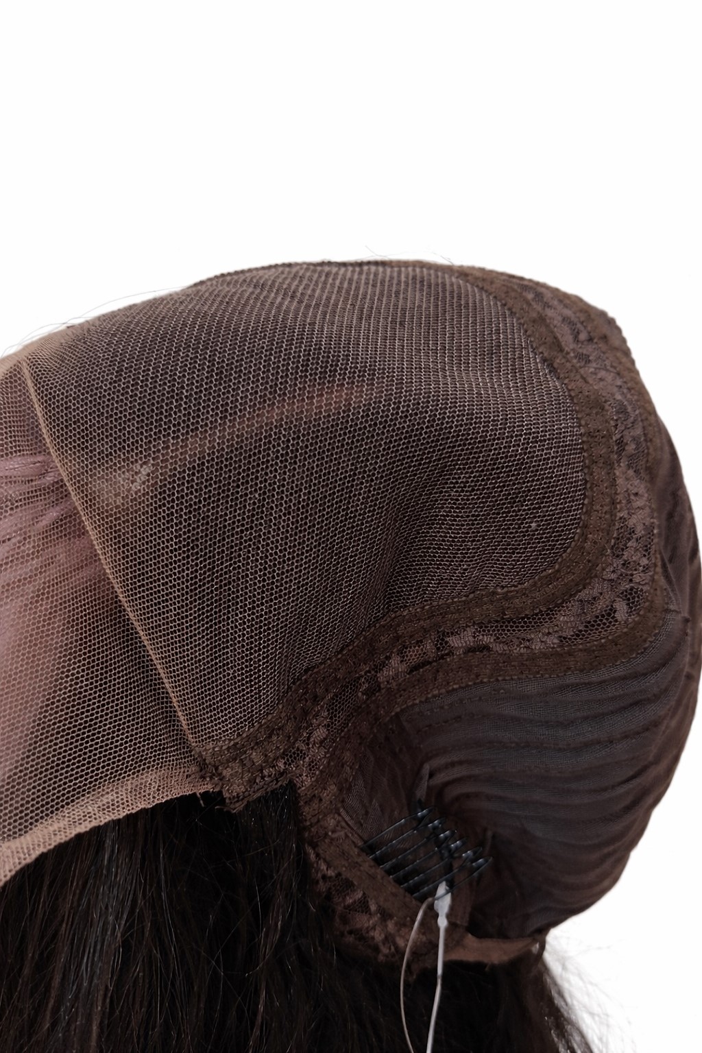 Peruka dodatkowo posiada wykończenie mono lace – jest to półprzeźroczysta siateczka wchodząca na – daje efekt mikroskóry, siateczkę należy przyciąć w linii czoła.