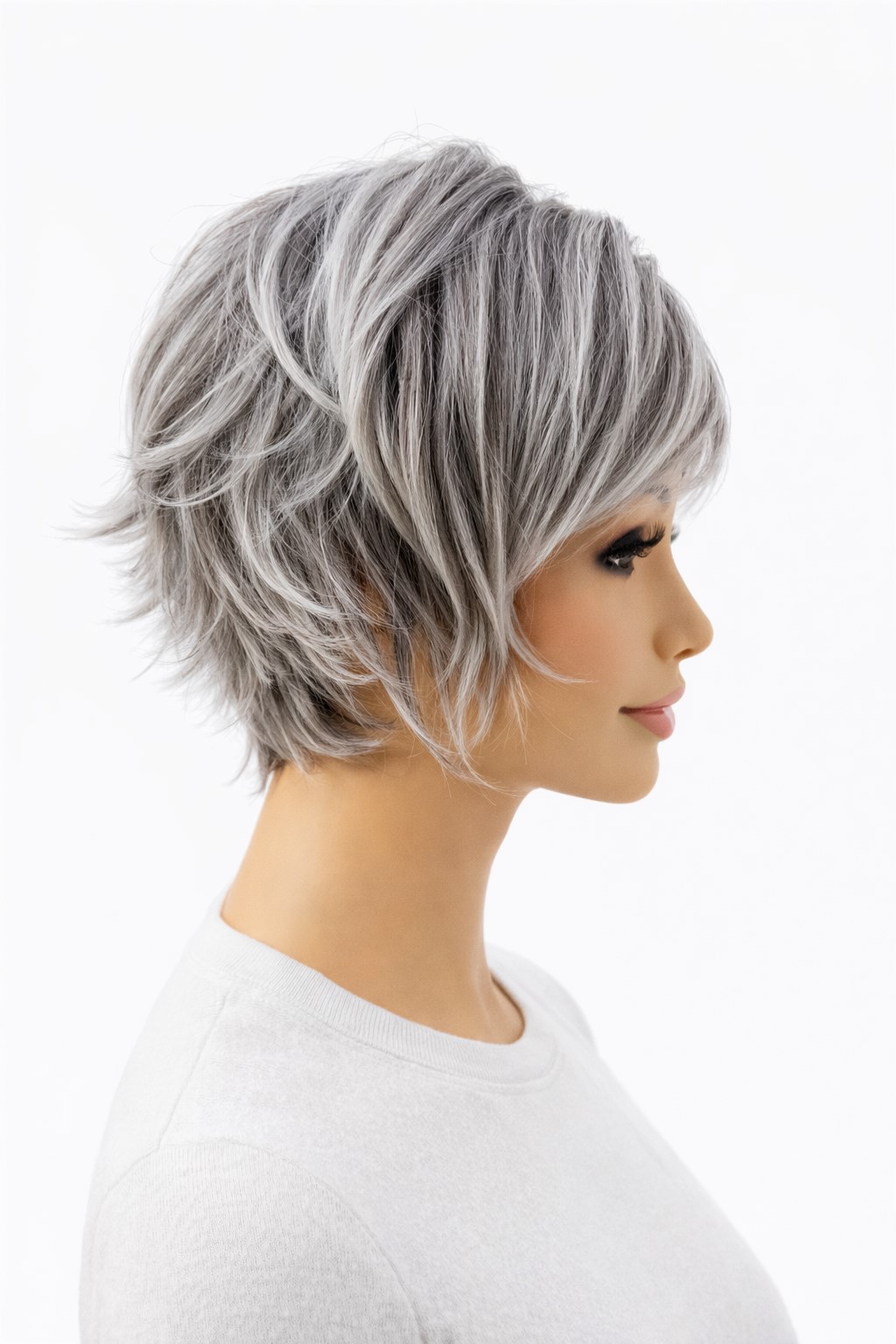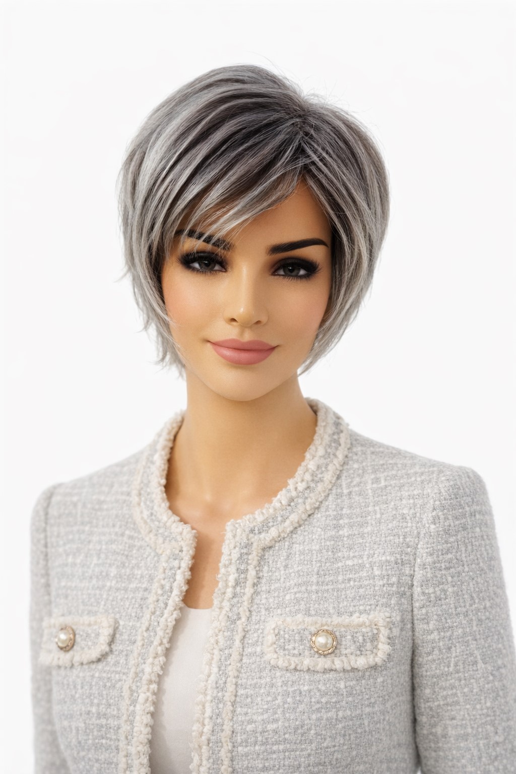 Styl peruki nadąża za najnowszymi trendami modowymi, dłuższa grzywka i perfekcyjne cieniowanie włosów nadają lekkości fryzurze.